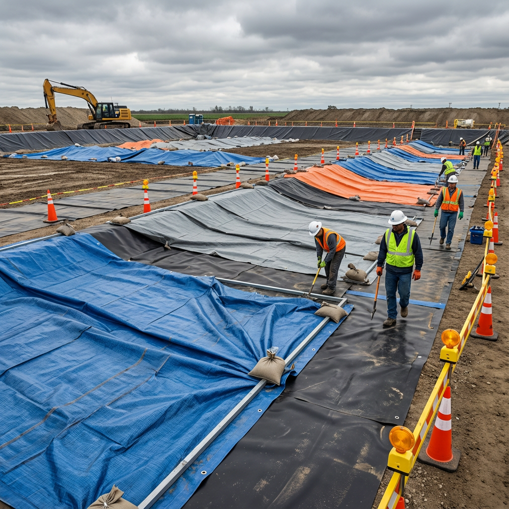 I teli non richiedono manodopera specializzata per la posa, consentendo interventi tempestivi anche in contesti critici. La loro struttura garantisce impermeabilità, resistenza e affidabilità, rendendoli adatti a operazioni di bonifica temporanee o prolungate nel tempo.